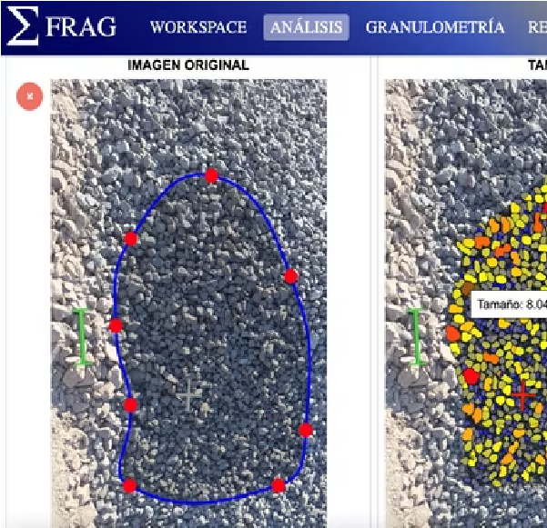 Software para análise de fragmentação de rochas, fornecendo dados precisos para otimizar eficiência e reduzir custos. Disponível como serviço e venda.